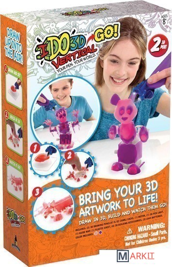 Конструкция 3D-ручки iDo3D Vertical отличается от аналогов тем, что для объемного рисования используется отвердевающий полимер, не требующий предварительного нагрева. Это делает ручку безопасной для детей и более простой в использовании. Для отверждения применяется специальная съемная насадка с лампой.