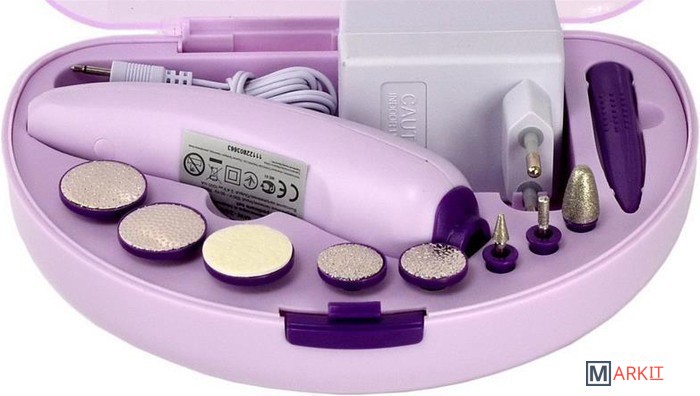 Набор позволит вам смело отказаться от услуг профессионалов. В набор входят восемь насадок, при помощи которых вы быстро удалите кутикулу, обработаете ногти и кожу вокруг них, а подсветка рабочей области сделает ваш маникюр или педикюр более качественным.