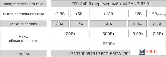 | Технические характеристики блока питания | |