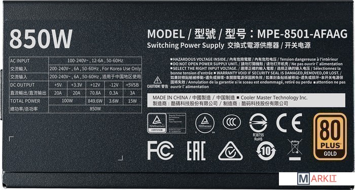 Markit » Блоки питания » Блок питания Cooler Master MWE Gold 850 V2 Full Modular MPE-8501-AFAAG-EU