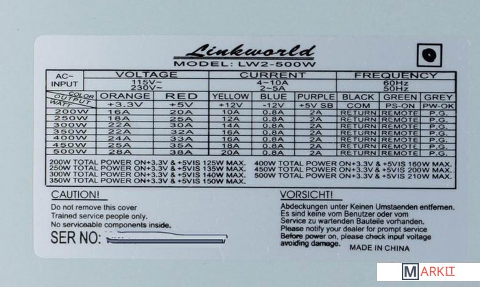 Markit » Блоки питания » Блок питания Linkworld LW2-500W 500W