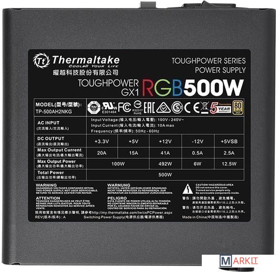 Markit » Блоки питания » Блок питания Thermaltake Toughpower GX1 RGB 500W Gold TP-500AH2NKG