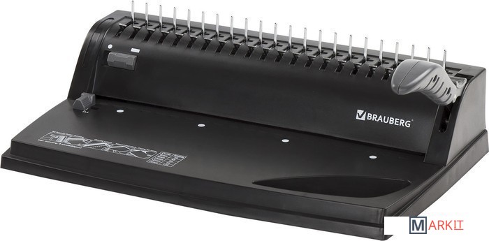 Переплетная машина для пластиковой пружины BRAUBERG «B8» (брошюровщик) идеально подходит для небольшого офиса и дома, где периодически возникает потребность в переплете документов.С ее помощью можно одновременно перфорировать 8 листов плотностью 80 г/м2 и подшивать до 125 листов формата А4, А5 и А3 (в альбомной ориентации). Горизонтальная загрузка документов.Особенности:— максимальная толщина переплета: до 125 страниц при использовании 14-мм пружины;— дополнительная функция дырокола на 4 отверстия для перфорирования документов и их подшивания в папку на 4 кольцах;— пробивная мощность: до 8 листов (80 г/м2);— удобная ручка для переноса машины;— ограничитель формата;— ручка для перфорации фиксируется для более удобного хранения машины;— инструкция по подбору пружин к количеству переплетаемых листов нанесена на машину.Пробивает и переплетает листы формата А3 по короткой стороне, А4, А5, А6, А7 и ниже — по длинной стороне.