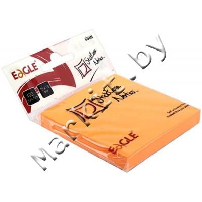 Бумага для заметок с липким краем Eagle, 75 x 75 мм, 1 блок x 100 л., неон оранжевая Код: 31114