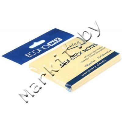 Бумага для заметок с липким краем Economix, 75 x 100 мм, 1 блок x 100 л., желтая Код: 31125