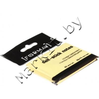 Бумага для заметок с липким краем Format, 50 x 75 мм, 1 блок x 80 л., желтая Код: 31133