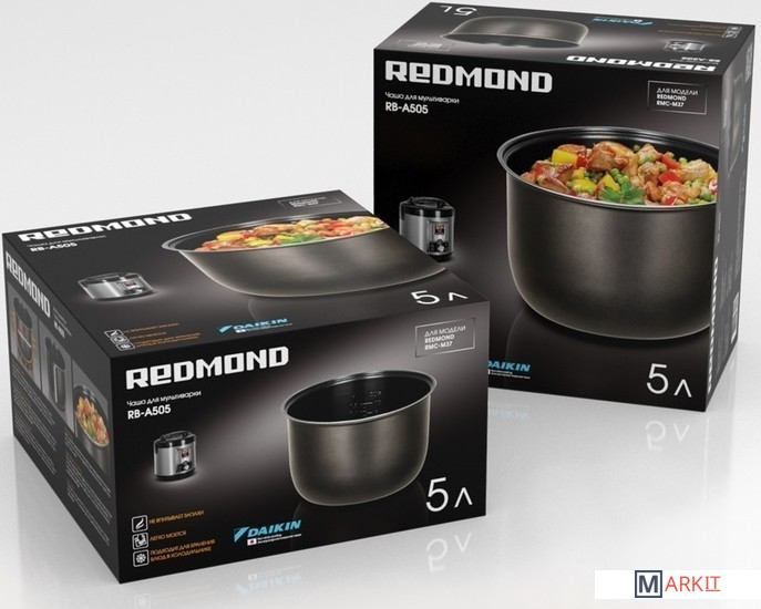 RB-A505 – универсальная чаша для мультиварки REDMOND RMC-M37. Объем чаши – 5 литров, в ней удобно готовить как небольшое количество еды, так и несколько порций для всей семьи.Чаша RB-A505 выполнена из прочного алюминия. Этот материал отличается легкостью и долговечностью. Даже при сильном нагреве материал не деформируется. Прелесть этой модели в том, что в ней можно хранить приготовленное блюдо в холодильнике.Внутри чаша покрыта антипригарным слоем Daikin®, который позволит вам готовить еду с использованием минимального количества масла или совсем без него. При этом ингредиенты не подгорят, зато вам удастся снизить калорийность еды.Чаша не требует особого ухода: после приготовления ее достаточно ополоснуть под проточной водой с помощью мягкой губки и обычных моющих средств.