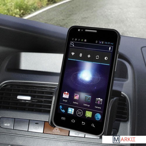 Автодержатель для телефонов, смартфонов и других электронных устройств шириной до 6,5 см. В комплекте идёт крепление на решетку вентиляции, имеющее механизм изменения угла наклона держателя.Особенность устройства - автоматическое выдвижение боковых ограничителей нажатием кнопки.