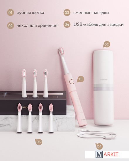 Markit » Электрические зубные щетки и ирригаторы » Электрическая зубная щетка Fairywill E11 (розовый, 8 насадок)