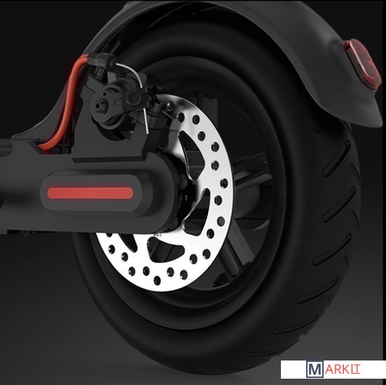 Запас хода 45 км  (измерен при отсутствии ветра и температуре 25°C на полностью заряженном самокате, двигающимся с постоянной скоростью 15 км/ч по гладкой поверхности с нагрузкой 75 кг)