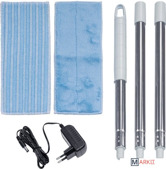 Комплектация Трехсекционная металлическая трубкаТряпка для влажной уборки и мытья пола (2 шт.)Размер тряпки 285 х 95 ммИнструмент для очистки щеткиСетевой адаптер