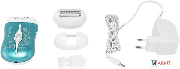 Эпилятор STARWIND SEP 6031 – предназначенный для женщин прибор, отличается стильным и гламурным дизайном. Голубой цвет в сочетании с белым растительным орнаментом создает нежный, трогательный внешний вид. Комфортно пользоваться таким устройством: как будто множество маленьких пинцетиков одновременно бережно выдергивают каждый волосок, оставляя кожу гладкой. Большим плюсом является то, что после применения не возникает раздражений.Работает от аккумуляторной батареи, которая подзаряжается от сети питания. Кнопка управления переключает скорости и регулирует интенсивность обработки. Эпилятор Starwind удаляет волоски прямо с корнем, после такой процедуры они отрастают медленнее. Все насадки съемные, легко очищаются от загрязнений.