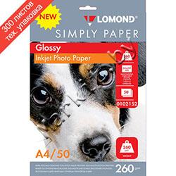 Фотобумага Lomond Simply (1103111) A4 260 г/м2 глянцевая, односторонняя, 300 листов Код: 23328