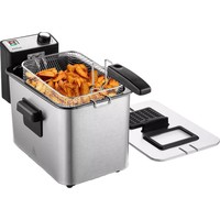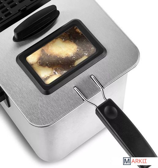 Продукты во фритюрнице Kitfort КТ-4053 готовятся быстрее, чем на сковороде из-за короткого воздействия высокой температуры со всех сторон. Хорошо зажаренные во фритюре продукты покрыты хрустящей корочкой, под которой почти нет масла.Ручкой регулятора температуры выбирается температура приготовления от 130 до 190 °С. У фритюрницы есть защита от перегрева. При перегреве сработает термостат, который отключит фритюрницу.В крышке фритюрницы имеется смотровое окно, через которое вы сможете следить за степенью готовности блюда, не поднимая крышку. Угольные фильтры на вентиляционной решетке помогут сдержать распространения запаха и маслянистых испарений во время жарки.Удобные ручки по бокам позволяют перемещать прибор даже во время его работы или пока масло еще не остыло. Боковые ручки, ручки крышки и корзины выполнены из термостойкой пластмассы.Во фритюре можно готовить картофель фри, картофель по-деревенски, чипсы, овощи, рыбу, мясо, птицу, куриные окорочка, крылышки, креветки, пирожки, пончики и многое другое. Все это можно жарить в кляре и без.Устройство имеет отсек для хранения шнура питания. Корпус, крышка и корзина фритюрницы КТ-4053 выполнены из нержавеющей стали.У КТ-4053 есть «холодная зона»—это зазор между чашей и нагревателем. Нагреватель во фритюрнице погружной, при установке в чашу не достает до дна. Поэтому осадки от продуктов на дне находятся в холодном месте, они не будут гореть и давать неприятный запах.После приготовления фритюрницу легко разобрать и очистить от загрязнений.Мощность: 2000 Вт.Емкость чаши: 7.8 л.Рабочая емкость чаши min/max: 2,5/4 л.Емкость корзины: 2,5 л.Температура: 130-190 °C.Длина шнура: 1 м.Размер устройства: 380х244х250 мм.Вес: 3.1 кг.
