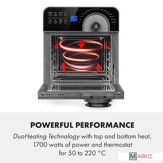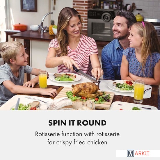 Во фритюрнице Klarstein AeroVital Cube Chef с емкостью 14 л и двум нагревательным элементам (верхний и нижний) вы можете безупречно жарить, запекать, готовить на гриле или запекать любые блюда.