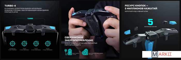 Компактный складной геймпад для смартфонов. Максимально простое, но в то же время элегантное решение, созданное специально для любителей онлайн-шутеров. Четыре режима стрельбы и элементарное подсоединение позволяют киберспортсмену получить по-настоящему консольный игровой опыт на своем смартфоне.