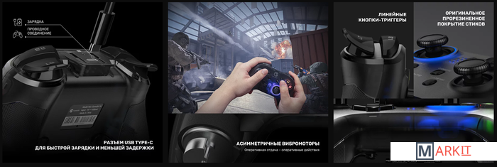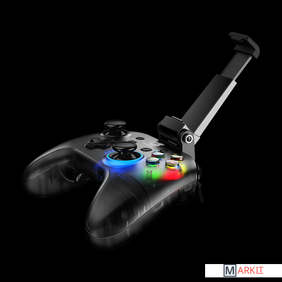 Геймпад с потрясающей RGB-подсветкой. Съемный механизм крепления смартфона позволяет использовать его в качестве классического контроллера для ПК. Четыре дополнительные программируемые кнопки гарантируют комфортный игровой процесс в шутерах с высокой активностью. Гироскоп и асимметричные вибромоторы способствуют более глубокому погружению в игровой процесс независимо от платформы (iOS, Android, Nintendo Switch и ПК).