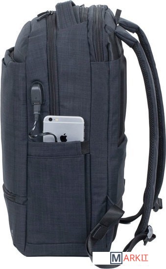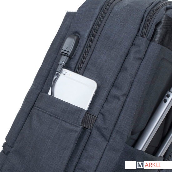 На боковой стороне рюкзака имеется USB-порт для подключения портативного внешнего аккумулятора.