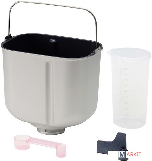 Комплект поставки - хлебопечь с чашей;- лопатка для замеса теста;- мерная ложка;- мерный стакан. / - хлебопечь;- чаша для выпечки;- лопатка для замеса теста;- мерная ложка двойная;- мерный стакан.
