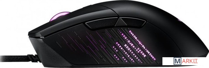 Геймерская мышь с классическим асимметричным корпусом: высокоточный сенсор (19 000 точек/дюйм), сменные переключатели, дизайн в стиле ROG, ножки ROG Omni, кабель ROG Paracord, синхронизируемая подсветка Aura.Великолепные характеристики: чувствительность – 19 000 dpi (настройка до 26 000 dpi), максимальная скорость отслеживания – 400 дюймов в секунду, частота опроса – 1000 Гц.Моментальная реакция: нулевая латентность щелчка.Слоты для сменных переключателей основных кнопок: совместимы с механическими переключателями и оптическими микропереключателями Omron.Микропереключатели ROG: стабильное усилие нажатия и длительный срок службы (70 млн щелчков).В стиле ROG: боковина с лазерной гравировкой и полноцветной подсветкой.Плавное скольжение: кабель ROG Paracord и закругленные тефлоновые ножки.Шарнирный механизм основных кнопок: быстрое срабатывание с четким тактильным откликом.Внутренняя память: хранение пяти профилей с пользовательскими настройками.Моментальная настройка разрешения: выбор чувствительности сенсора с помощью колесика мыши.Эксклюзивное приложение Armoury Crate для удобной настройки устройства.