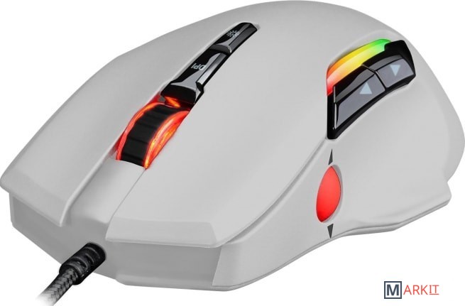Ножки выполнены из тефлона высочайшего качества, тщательно обработаны, края скруглены, без всяких неровностей и заусенцев, поэтому мышь скользит как по маслу.По умолчанию (без использования программного обеспечения) для использования доступны 2 режима работы дополнительного колеса прокрутки.Смена режимов осуществляется кнопкой на дне мыши. Режим 1:3 (нажать и удерживать) - кнопка SNIPER (мгновенное понижение разрешения сенсора до 500 DPI для точного прицеливания).1 и 2 (скролл вверх и вниз) - дублирование функции прокрутки основного колесика.Режим 2:3 (нажать) - кнопка FIRE (двойной клик левой клавишей мыши). При использовании в игре пока кнопка удерживается нажатой стрельба не прекращается.1 и 2 (скролл вверх и вниз) - изменение уровня DPI на 100 единиц в большую или меньшую сторону.При использовании программного обеспечения доступны 4 предустановленных режима, созданных для гейминга, офисной работы, а также мультимедийный режим.Каждый из этих режимов можно изменять и настраивать по собственному усмотрению и полностью изменять функционал кнопок.