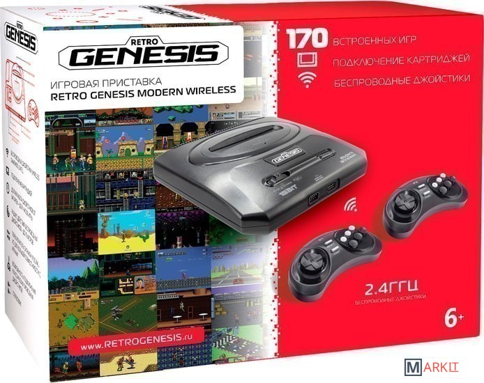 Игровая приставка Retro Genesis Modern обладает классическим набором характеристик 16-битной приставки. Предустановлено 170 игр, а также есть возможность использовать игровые картриджи.