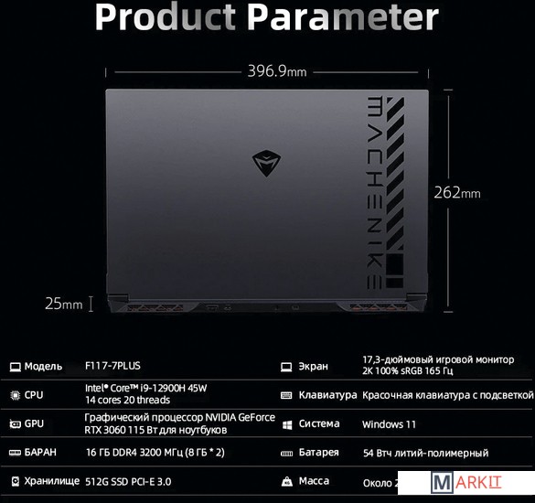 Markit » Ноутбуки » Игровой ноутбук Machenike L17 Gen 12 L17-i512500H30606GQ165HHD0R2