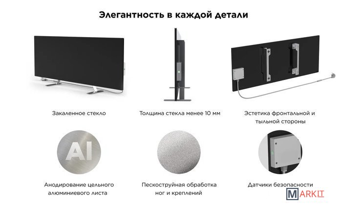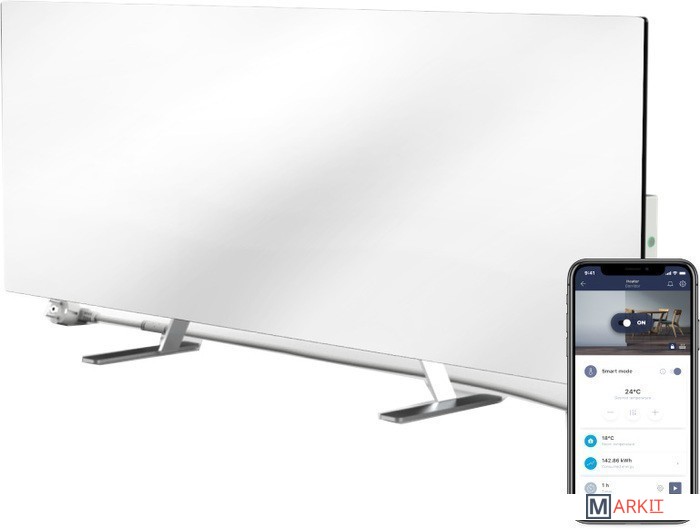 Экономичный и экологичный инфракрасный обогреватель Joule с уникальной технологией нагрева позволяет экономить деньги с первого включения! Это идеальное сочетание эстетики, быстрого равномерного обогрева и экономичного энергопотребления.Минималистичный и элегантный дизайн, заключенный в тонкую и плоскую форму панели (толщина менее 10 мм) из закаленного прочного стекла, позволяют обогревателю органично и эстетично вписаться в любой интерьер. Пользователь может сам выбрать наиболее подходящий и удобный способ установки: на пол или стену.Инновационная технология нагрева, использованная в устройстве, совмещает инфракрасный и конвекционный методы. Это обеспечивает работу обогревателя мощностью 700 Вт. С экономичным обогревателем Joule комната получит максимальное количество тепла при затратах на электроэнергию на 50% меньше в сравнении с обычным обогревателем. Joule подходит для помещений площадью до 24м2. Экологичный и безопасный обогрев не сушит воздух, не сжигает кислород и поддерживает заданный температурный режим в помещении. С помощью функции умный климат-контроль и удаленного управления через мобильное приложение можно дистанционно включить и выключить обогреватель, установить температурный режим, задать время включения по таймеру, а также контролировать расходы на электроэнергию. Обогреватель оснащен системой случайного включения “Защита от детей” (Child Lock), его можно удаленно заблокировать через приложение, чтобы ребенок в отсутствии взрослых не смог включить устройство. Также в обогреватель установлен гироскоп, который зафиксирует опрокидывание устройства, немедленно его выключит, подаст звуковой сигнал и отправит push-уведомленіе на телефон. Обогреватель выполнен из безопасных эко-материалов, которые не выделяют вредных веществ и запахов, благодаря чем работа устройства становиться еще комфортнее для аллергиков.Простой монтаж не требует специальных навыков. В комплект входят: ножки для напольной установки и прочные крепления для настенного монтажа. Установка обогревателя не отнимет много времени и не составит большого труда.