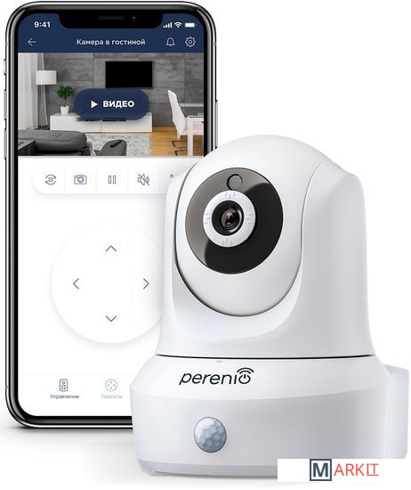Поворотная Wi-Fi-камера Perenio PEIRC01 предназначена для систем внутреннего видеонаблюдения и может использоваться как самостоятельно, так и совместно с другими устройствами в составе комплексной системы Perenio Smart.Процессор HiSilicon обеспечивает высокую чистоту цветного изображения в течение дня.Режим ночного видения (до 15 метров) обеспечивают ИК-светодиоды.Высокое разрешение записи видео: Full HD 1080p, 2Мп.Push-уведомление в бесплатном приложении Perenio Smart при обнаружении движения.Просмотр видео в режиме реального времени, а также запись на карту памяти (до 64гб).Как это работает?Пользователь в любое время может зайти в приложение и посмотреть что происходит у него в помещении с установленной камерой. Обзор камеры покрывает всю площадь благодаря опции удаленного поворота камеры на 350 градусов вокруг своей оси, а также наклона в 120 градусов. При включенном режиме охраны камера фиксирует любое движение в области обзора и автоматически записывает видео на карту памяти кадрами по 30 секунд. В приложение на смартфон пользователя при этом приходит push-уведомление об обнаружении движения. Как подключить?1. Подключить камеру к электросети.2. Активировать поворотную камеру в приложении Perenio Smart.3. Установить камеру в необходимое место.
