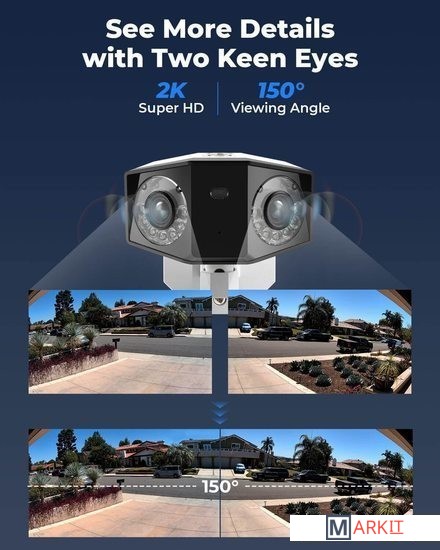 Умная камера 2K PoE с двумя объективамиОбнаружение человека/транспортного средства