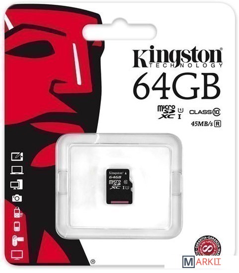 Markit » Карты памяти » Карта памяти Kingston microSDXC UHS-I (Class 10) 64GB [SDC10G2/64GBSP]