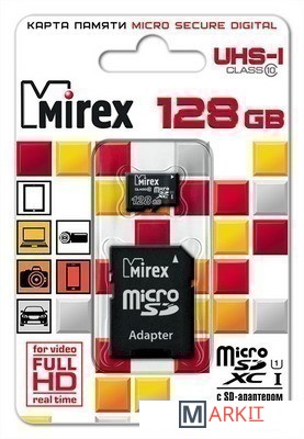 Markit » Карты памяти » Карта памяти Mirex microSDXC UHS-I (Class 10) 128GB + адаптер [13613-AD10S128]