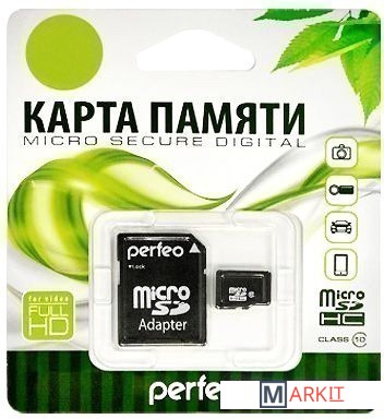 Markit » Карты памяти » Карта памяти Perfeo microSDHC Class 10 32GB + адаптер [PF32GMCSH10A]