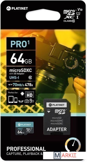 Markit » Карты памяти » Карта памяти Platinet PMMSDX64UI 64GB + адаптер