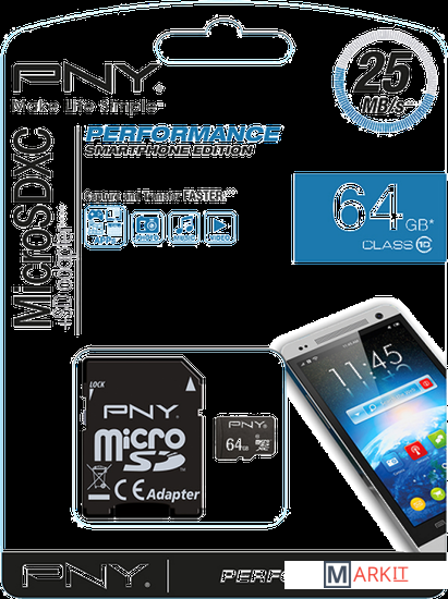 Markit » Карты памяти » Карта памяти PNY MicroSDXC Performance 64GB (SDU64GPER25-EF)