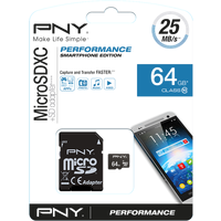 Карта памяти PNY MicroSDXC Performance 64GB (SDU64GPER25-EF) Код: 96240