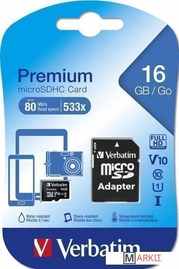 Markit » Карты памяти » Карта памяти Verbatim Premium 44082 16GB + адаптер