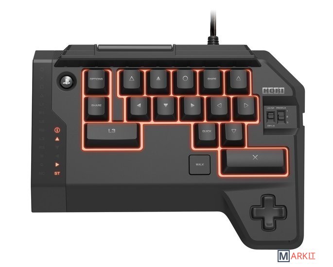 Комбинация из мыши и клавиатуры специально рассчитана под PS4 и не включает полноценной раскладки для ввода текста. Вместо этого мини-блок дублирует все кнопки контроллера DualShock 4 в форме клавиатуры.
