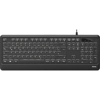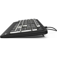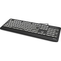 Клавиатура HAMA KC-550 подключается через разъем USB. Отличается удобной подсветкой клавиш, которая позволяет комфортно работать по ночам, не мешая отдыхать близким. Провод достаточно длинный, имеется удобная направляющая для него, в которую он укладывается и не мешает процессу работы. Для удобства пользователя есть специальные приспособления, позволяющие менять угол наклона устройства, достигая самого комфортного состояния. Устройство имеет квадратные, приятные на ощупь и легкие в нажиме клавиши. Расположены они в классическом порядке, хорошо разделены. Клавиатура HAMA KC-550 создана в классическом стиле, имеет черный цвет с приятной белой подсветкой. Буквы на раскладках английской и русской нанесены белой краской.