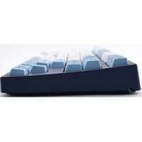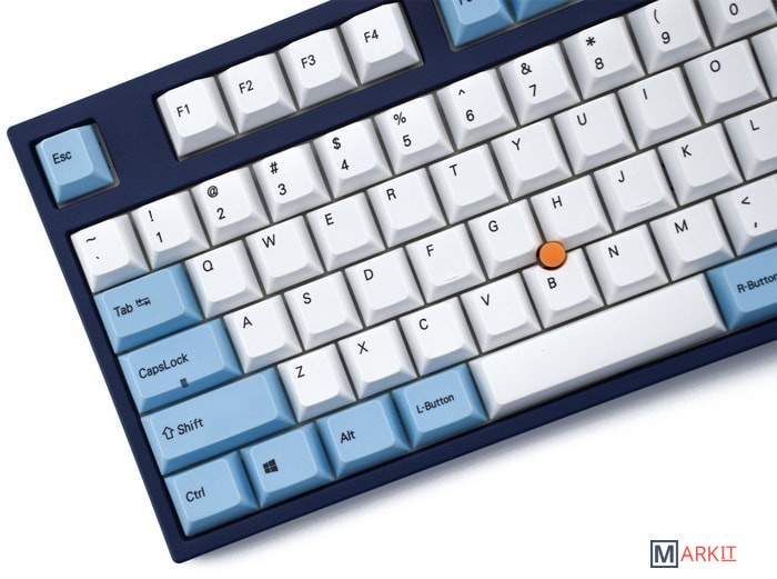 Тип: тихий линейныйСила нажатия: 45 грамм (легкие)Длина пути: 3.7 мм (1.9 мм до срабатывания)Данная модель представлена в тёмно-синем окрасе с белыми и светло-голубыми клавишами, расцветка выглядит свежо и воздушно. Клавиатура собрана добротно и монолитно, а сочетание высококачественных PBT клавиш с переключателями Cherry MX и звукопоглощающей подложки позволяет сделать печать на клавиатуре максимально тихой (насколько это возможно для механики). Mini-USB порт спрятан в центре под корпусом, а на самой клавиатуре имеются центральная и две боковые канавки под кабель.Уникальная для клавиатур Leopold фишка: теперь, если у вас нет под рукой мыши, клавиатура сможет взять её обязанности на себя. Указательный стик позволяет перемещать курсор, а для левой и правой кнопок мыши с обеих сторон пробела расположились специальные клавиши.Клавиатура поддерживает сочетание клавиш для регулировки громкости и управления музыкой, также имеется возможность переключения между 6KRO и NKRO.DIP-переключатели на задней панелиДают возможность поменять местами функции кнопок Ctrl и Caps Lock, Windows и Alt, Windows и Fn или отключить Windows.Звукопоглощающая подложкаПоглощает звуки при нажатии, делая процесс печати более тихим по сравнению с обычными механическими клавиатурами.Низкопрофильные клавиши Step-Sculpture2Данные клавиши заметно ниже и имеют оптимальный угол наклона, из-за чего, по отзывам, печатать приятнее и комфортнее, чем на более высоких клавишах.Клавиатура совместима с Mac OSFN-слой работает (кроме клавиш F6, F8, F9), а поменять местами клавиши-модификаторы можно в системных настройках. Проверено с MAC OS 10.13Функция Full N-key Rollover по USB (NKRO)Позволяет нажимать одновременно неограниченное количество клавиш. Для печати идеально подойдет как 6KRO, так и NKRO, независимо от вашей скорости. Для игр NKRO будет плюсом и неважно, нажимаете ли вы больше 6 кнопок или нет, поскольку, играя в любую игру, вы можете случайно нажать пару лишних клавиш и из-за этого клавиатура имеет шанс не среагировать на нажатие, которое вы хотели совершить изначально. Имеется возможность переключения между NKRO и 6KRO через FN сочетания.