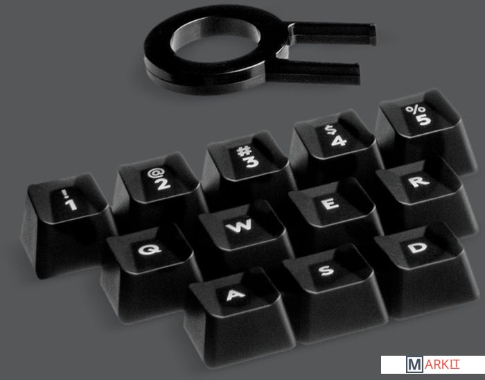 Комплект поставки - съемная подставка под запястье- сменные колпачки клавиш- зажим для снятия колпачков- документация