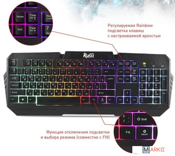| Подсветка клавиш | Rainbow + 3 режима яркости и 2 режима свечения |