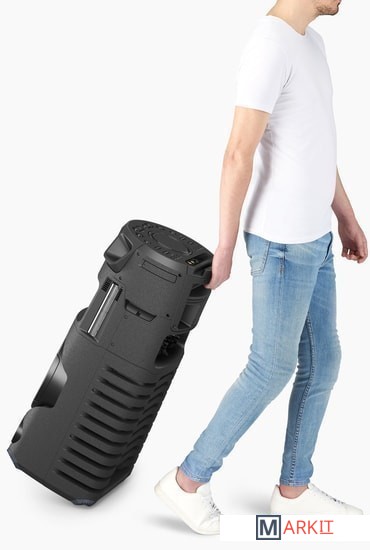Слушайте музыку в любом уголке площадки благодаря технологии Spread Sound с высокоэффективными высоко- и среднечастотными динамиками, включите цветные клубные световые эффекты и подсветку динамиков. Добавьте веселья с помощью функций Party Playlist и Karaoke Ranking в нашем приложении Fiestable. А благодаря протекторам и колесикам транспортировать систему очень просто.