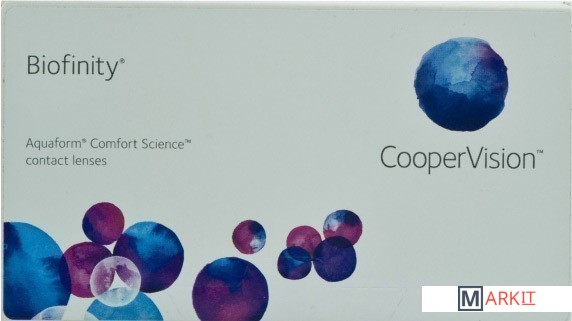 Biofinity — силикон-гидрогелевые контактные линзы, производства компании CooperVision, с рекомендованным сроком плановой замены 1 месяц при дневном ношении и 2 недели при пролонгированном.Контактные линзы Biofinity изготовлены по технологии AQUAFORM – научный прорыв в технологиях производства силикон-гидрогелевых материалов для контактных линз, что обеспечивает более эффективное кислородопропускание.