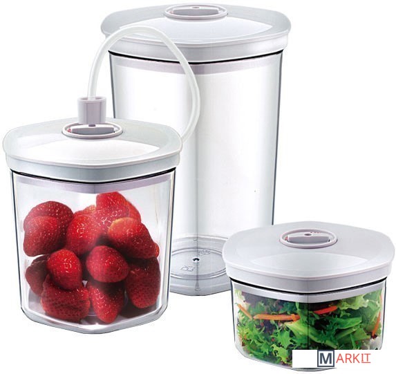 | Комплектация | Три вакуумных контейнера объемом 0.75, 1.4 и 2.0 литра и вакуумная трубка. |