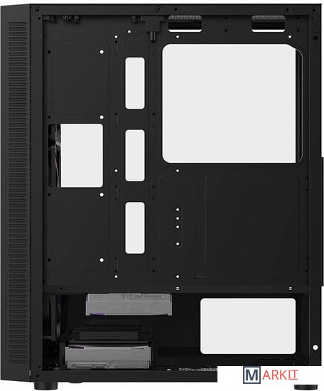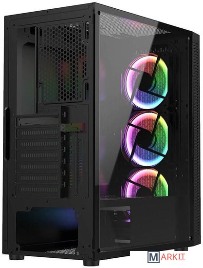 Превосходная вентилируемость внутреннего пространства, необычный дизайн фронтальной панели и полноразмерная боковая панель из закаленного стекла - одни из ключевых характеристик для данной модели. Совместимость с материнскими платами размера ATX, установка графических карт до 340мм длиной и CPU кулеров до 165мм высотой.