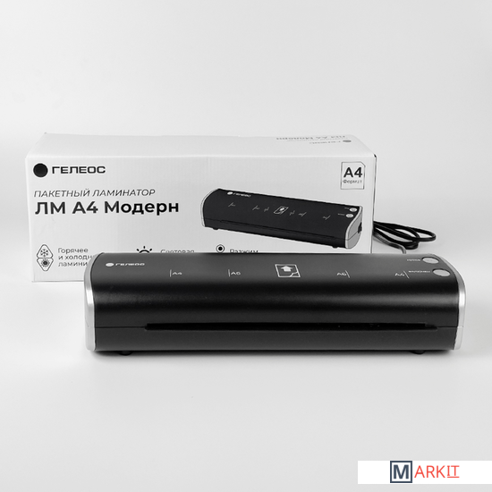Пакетный компактный 2-х валовый ламинатор ГЕЛЕОС ЛМА4 Модерн для ламинирования документов формата А4 и меньше. Эта внешне лаконичная и дизайнерская модель ламинатора разместится в любом уголке помещения и создаст свое настроение в интерьере. Замечательно подойдет для детских учреждений, таких как детский сад и школа, в комнате у ребенка. Двухцветный, гармоничный и интересный по форме аппарат займет достойное и небольшое место на столе в офисе. Форма ламинатора обтекаемая, без углов. Заламинирует необходимый материал со скоростью 300 мм/сек. Фиксированная температура горячего ламинирования позволяет использовать пленки плотностью от 75 до 150 мкм. Чем больше мкм в пленке, тем жестче будет готовый материал. Так же, данная модель имеет функцию холодного ламинирования, что пригодится для ламинирования слишком чувствительных поверхностей: официальные документы с печатями и подписями, свидетельства, паспорта и тд. Очень простое и удобное управление. Рабочая панель на русском языке. Световая индикация вовремя предупредит о готовности валов к работе. Всего 4-5 минут нагрева и можно ламинировать документы. Максимальная толщина ламинирования документов 0,6 мм. В случае необходимости извлечь материал из ламинатора - предусмотрена функция разжима валов. Все это сэкономит ваши нервы и время в использовании ламинатора. Что можно заламинировать? Все, что толщиной до 0,6 мм (учитывая пленку) и находится на бумаге. Ламинирование детских рисунков - поможет защитить его на долгие годы и сделает краски еще более насыщенными. Ламинирование учебных пособий, карточек со словами, памяток, презентаций – очень актуально для занятий с маленькими детьми и не переживать, что карточки порвутся или испортятся. Идеальное решение для воспитателей и учителей. Ламинирование фотографий – защитит их от выгорания, влаги. Вы сможете оформить свой фотоальбом. А бывают ситуации, в которых фотографии, информационные листы, объявления, меню ресторанов и кафе, указатели используются на улице, и в таких случаях ламинирование приходится как нельзя кстати.