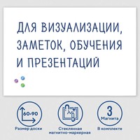 Markit » Офисные доски, флипчарты » Магнитно-маркерная доска BRAUBERG стеклянная 60x90 см (белый)