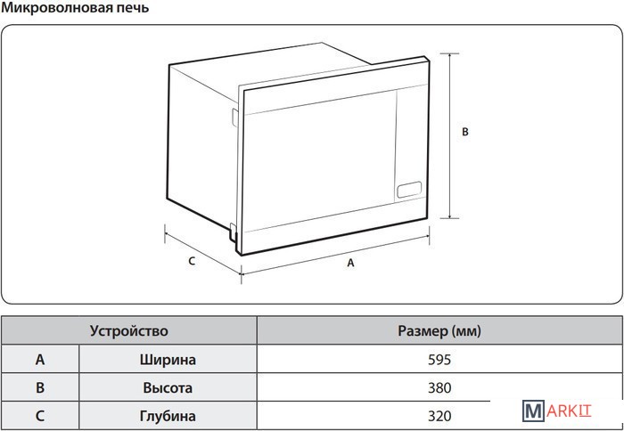 | Размеры ниши для встраивания |