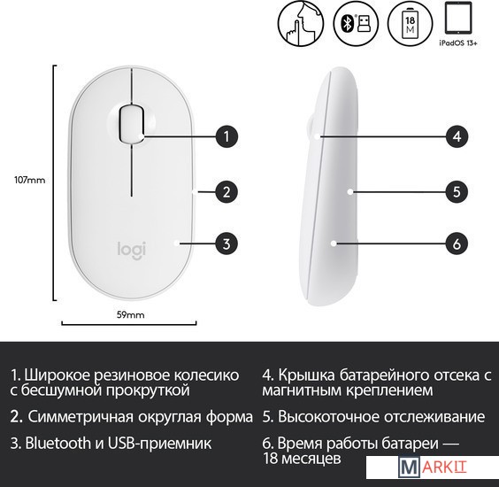 Markit » Компьютерные мыши » Мышь Logitech M350 Pebble (белый)